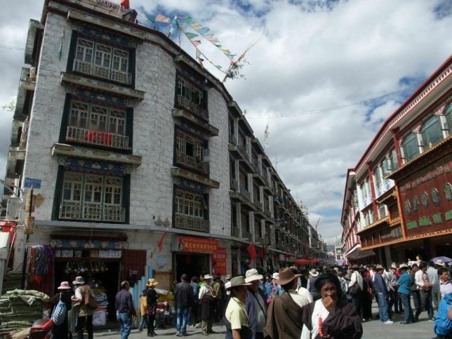 大昭寺广场及八廓街是拉萨最热闹的地方,旺季时人多得转个身可能就找不到同伴了。白天可在大昭寺门口坐着发呆,看人来人往,看磕头的人起起落落,晚上沿着八廓街走一圈,可看到拉萨最美的夜景。