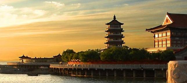 山东蓬莱八仙过海景区位于蓬莱市北黄海之滨,与长山列岛隔海相望,是一个三面环海的葫芦岛,有一座八仙桥通向景区,将人间与仙境紧紧的连在一起,游览面积5.5万平方米,主要景点近40处。周围海域天高水阔,景色壮观,空气宜人,是一个天然的大氧吧。春夏之交,常有海市、海滋出现,虚幻缥缈,美不胜收。景区以道教文化和蓬莱神话为背景,以八仙传说为主题,突出大海仙山的创意,集古典建筑与艺术园林于一体,内涵丰富,意境深远,观览性极强。