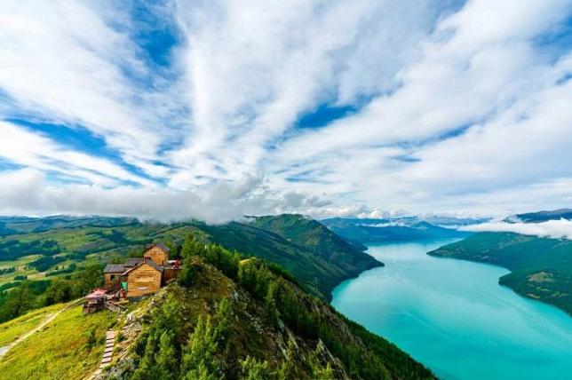 俯瞰喀那斯湖全景的最佳角度,为观察湖中的“湖怪”而建观鱼台位于哈纳斯湖西岸骆驼峰顶上,本为观“湖怪”而建,因此得名“观鱼台”。与湖面的600多米的高度差让这里成为俯瞰喀纳斯湖全景的最佳角度,不仅可将四分之三的湖面尽收眼底,还能观览湖周的层峦叠嶂、翠峰倒影。若举目北望,还能清楚地看到阿尔泰山的最高峰-友谊峰。所以,登观鱼台就成了来喀纳斯游玩的必做之事。