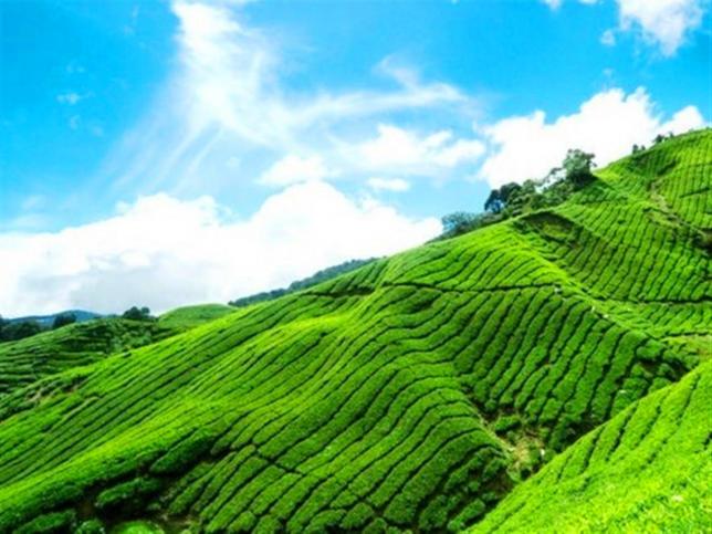 茶山位于佛顶山后,自北而西,婉蜒绵亘。山势崆旷,中多溪涧。而每在日出之前,茶树林夙雾缭绕,时而如丝似缕,时而姻缊弥漫。此时此刻,如若身处其间,如梦如幻,令人遐思无限。是普陀十二景茶山夙雾所在地。