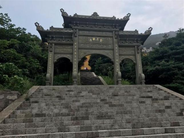攀登大佛岩是件很惬意的事,攀登虽不难,但也要攀藤扶树,钻洞挤缝恍然一种“山重水复疑无路,柳暗花明又一村”之感。登上大佛岩顶,极目远眺舟山群岛恰似水上盆景园,另有一番诗情画意。