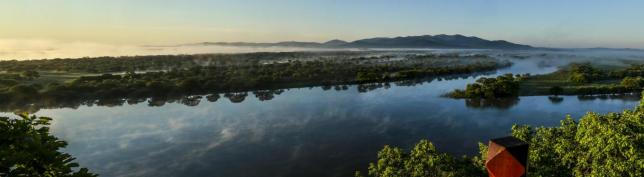 乌苏里江国家湿地公园,位于双鸭山市饶河县乌苏里江西岸,是众多湿地植物的生长地和多种水禽的繁衍地。