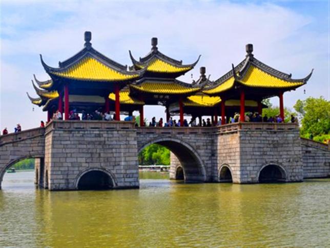 著名的湖上园林,自然景观旖旎多姿,建有很多风景建筑,是扬州雍容华贵的象征,享有“园林之盛,甲于天下”美誉。瘦西湖以“瘦”为特征,湖面时宽时窄,两岸林木扶疏,园林建筑古朴多姿。园区内桥很多,各有姿态。五亭桥上的风亭极具南方特色,满月之夜,十五个桥洞中每个都含着一个月亮。而二十四桥却沿展出长虹卧波的美景。春天,满园依依垂柳随风飘舞;秋日,红到惊艳的彼岸花又让瘦西湖多几分妩媚;日落黄昏时,徐园里发发呆也是不错的选择。