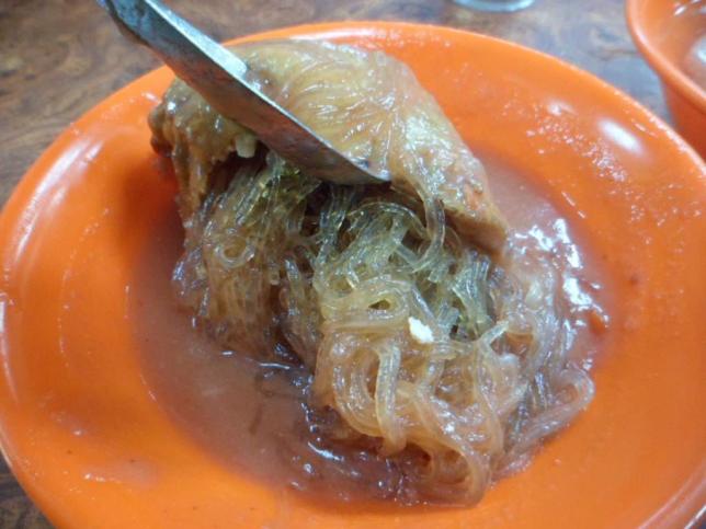 淡水阿给,“阿给”是日语油豆腐的意思,若到淡水老街,最不能错过的小吃就是阿给了。油豆腐中间被挖空后,放入浸泡过卤肉汁的粉丝,用鱼浆封口,蒸熟后淋上酱汁即可食用,口感鲜香独特。吃的时候别忘了配点饮料,不然会有点噎。