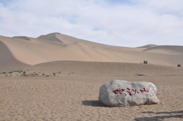 鸣沙山,古称神沙山、沙角山。东西长约40公里,南北宽20公里,高数十米,东起莫高窟崖顶,西接党河水库,山峰陡峭,势如刀刃,整个山体由油润细米粒状黄沙积聚而成。我攀山而上,只觉脚下的沙子会鸣鸣作响,虽深一脚浅一脚,前进一步后退半步,爬山异常艰难,但仍感乐趣无穷。