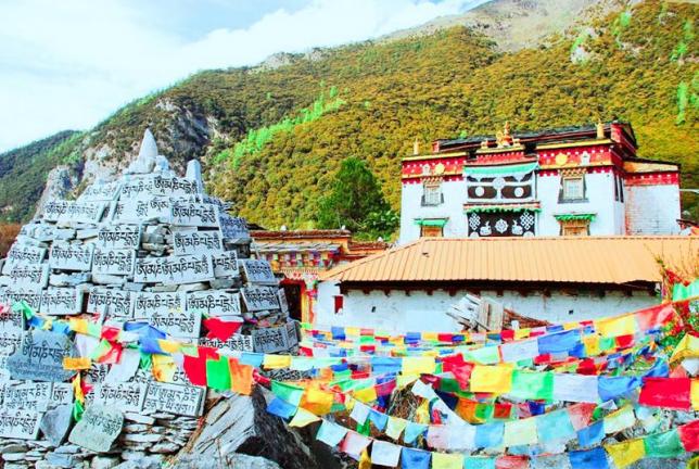 冲古寺在亚丁自然保护区内占据着最佳的地理位置,站在冲古寺前,头顶蓝得近乎通透的天空,脚踏如熊熊烈焰般的红草地,远处是千年不化的雪山,身后是沉睡了万载的峡谷,冲古寺犹如天堂之门,使你感觉自己已无限接近神的世界。任何一个摄影生手都能在冲古寺前拍出逼近专业水准的相片,它的取景位置实在是太得天独厚了。冲古寺是贡岭寺的分支机构,它的宗教职能渐渐弱化,其内已无诵经传教的喇嘛,如今已是座几近废弃的寺庙了,但它仍在为保护和管理过往旅客及周围生态环境而生存。