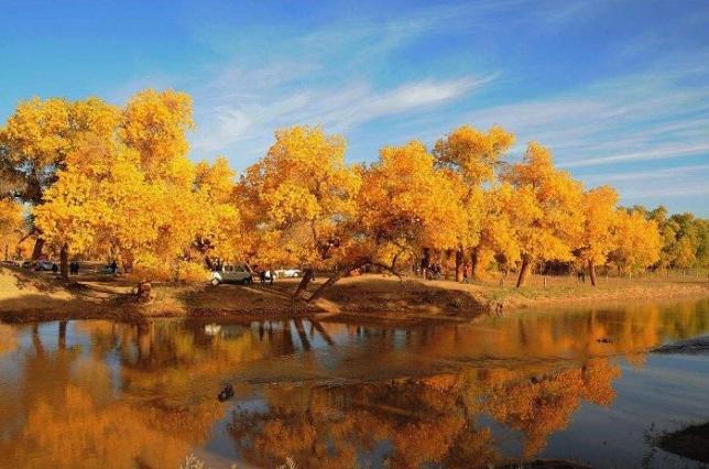 避开人流的野生胡杨林,美得更纯粹!尽情拍拍拍。额济纳旗的胡杨林远近闻名,游客大多集中在秋天去领略她的美,如果想要避开游客,倒是推荐你去看弱水金沙湾的胡杨林。这里最大的特色便是毫无修饰、自在生长的野生胡杨林。避开蜂拥的游客和铁丝网,可以更加悠然地拍照游玩。完美融合了野胡杨、沙漠、神水为一体,并被赋予了“弱水三千,只取一瓢”的爱情主题。这里没有来额济纳旗胡杨林的那份张扬,在弱水当中,秋日辽阔蓝天,日出漫天红霞,河畔金色胡杨……各色在水面交错闪烁...