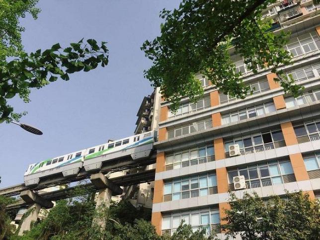 你还记得停靠在8楼的二路汽车吗?来李子坝带你感受穿楼而过的轻轨。李子坝观景台是专门看轻轨穿过居民楼的场景,周围有很多游客打卡。轻轨穿过居民楼后,列车行走在半山腰,景色也很美。往前走,就到了李子坝抗战遗址公园。高公馆、李根固旧居、刘湘公馆、国民参议院旧址、交通银行学校旧址都在其中。