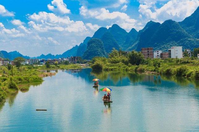 桂林沿途远远可见屹立在湖中的双塔,倒影在清澈而明净的湖面上;两岸纵横交错的树木,伴着夜色与灯光的辉映,使人仿佛置身于仙境,深深沉迷在这火树银花的世界中···还可以搭乘邮轮,环游这两江四湖,在船中静享这湖光美景,感受着天人合一的境界。晚饭后小情侣可相约到湖边赏景吹风,凭栏眺望,小桥流水,伊人相伴,别有一番情调。
