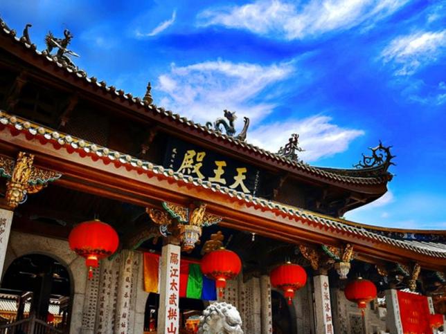 有“千年古刹”之称,位于五老峰山下,是闽南乃至全国闻名的寺院,紧临厦门大学。寺以奉祀观音为主,又在我国佛教四大名山之一―浙江普陀山之南,故名。南普陀寺起源于唐代,荟集了闽南渊源流长的历史文化,天王殿、大雄宝殿、大悲殿、藏经阁、左右厢房、钟鼓楼等构成的建筑群,雄伟、壮观。 藏经阁里珍藏有缅甸玉佛,宋代古钟、香炉,明代铜铸八首二十四臂观音清代瓷制济公活佛以及大量佛典经书著名的有《明大藏经》《日本大藏经》等。