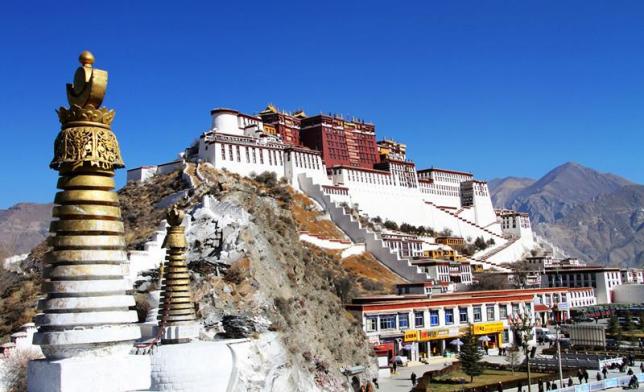 布达拉宫在西藏拉萨西北的玛布日山上,是著名的宫堡式建筑群,藏族古建筑艺术的精华。 布达拉宫始建于公元7世纪,是藏王松赞干布为远嫁西藏的唐朝文成公主而建。在拉萨海拔3,700多米的红山上建造了999间房屋的宫宇--布达拉宫。宫堡依山而建,现占地41万平方米,建筑面积13万平方米,宫体主楼13层,高115米,全部为石木结构,5座宫顶覆盖镏金铜瓦,金光灿烂,气势雄伟,是藏族古建筑艺术的精华。被誉为高原圣殿。