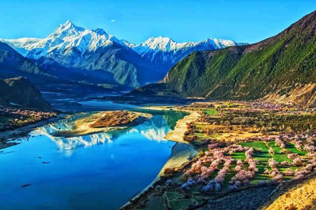 雅鲁藏布大峡谷北起米林县大渡卡村(海拔2880米),南到墨脱县巴昔卡村(海拔115米),雅鲁藏布大峡谷长504.6公里,平均深度2268米,最深处达6009米,平均海拔在3000米以上,是世界第一大峡谷。整个峡谷地区冰川、绝壁、陡坡、泥石流和巨浪滔天交错在一起,场面十分壮观。
