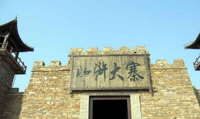 依东平湖而建。山寨设有三关。气势雄伟,蔚为壮观。是群雄议事、一百单八将排列座次的场所,水寨周围有万亩天然湿地,芦苇丛生,是游客体验水浒文化、休闲度假的理想胜地。
