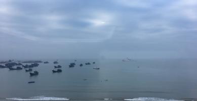 青澳湾,湾口朝东南,湾腹很深,湾弧达2.9公里,登高俯视,就象一弯新月,难怪这里有以月亮命名的宾馆和雕塑。岭头新建的一座凉亭,名曰:“览月亭”。在览月亭凭栏纵目,一湾湛蓝的海水,低吻着洁净宽广的沙滩。成排成片的木麻黄树循着孤形沙滩蔓延开去。