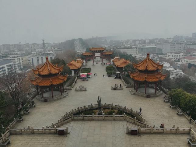 漫步在黄鹤楼的高层回廊,任乱发飞舞,恨不能将整个景致尽收眼底。向外望去,江雾弥漫的长江一水横来,横贯南北的大桥飞龙而去,在这片迷雾中,车骑舟航,似乎要将长江与京广铁路这两条经济大动脉在这座楼里交汇,然后伸向祖国的东西南北。矗立江边经风历雨的黄鹤楼,隐隐透着荆楚雄风。当年屈原曾在这片土地且行且歌,留下千古华章。而摔琴祭友、成就“高山流水”佳话的楚国乐师俞伯牙,其真诚千载后仍让人动容。楚地英才一片浪漫狂放之气,这也是黄鹤楼的气质。