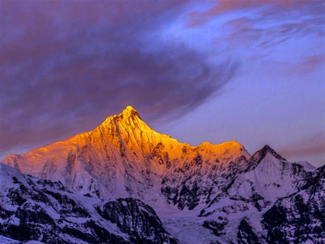 梅里雪山又称太子雪山,是藏区八大神山之首,其著名的“日照金山”是很多人梦寐以求难得一见的胜景。其海拔6740米的主峰至今仍是未被征服的“处女峰”,也是唯一因文化保护而禁止攀登的高峰。观赏梅里雪山的最佳时间是10月至次年5月,这段时间看到主峰及其他山峰的概率最高。