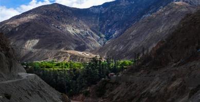 飞来寺位于距离德钦县城约10公里处的滇藏公路边,正对梅里雪山主峰卡瓦格博,是拍摄“日照金山”的绝佳地点。由于特殊的地理位置,这里已经成为滇藏线旁的一处游客集散地,客栈餐馆一应俱全。其实这里真的有一座很小的寺庙,平时只有一个喇嘛和一只猫还有一只大公鸡为伴。飞来寺村里有比较高端的观景天堂大酒店,也有适合背包客的觉色滇乡青年旅舍,适合不同类型的旅行者。从飞来寺出来,沿214国道前行约10分钟就可以到达公路左边的飞来寺观景台。但是拍“日照金山”并不一定非得到观景台,国道边其他地方也可以拍到。