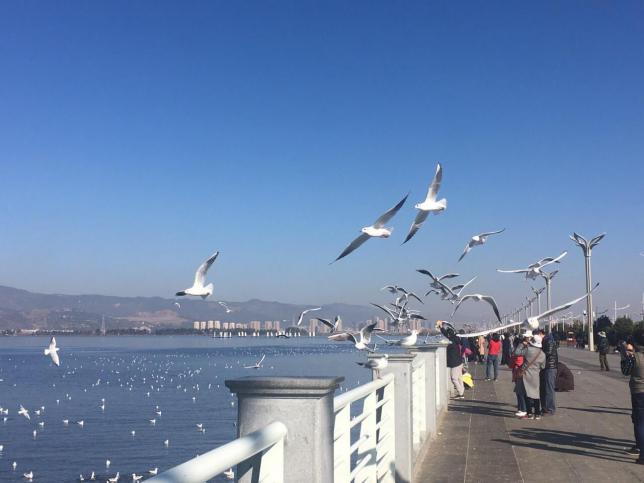 昆明,无愧于“春城”这一雅称,四季如春,天空碧蓝又高远,仿佛是透明的。太阳肆意地迸发着耀眼的光,迎着每一位在这座城中漫步的人。翠湖边喂红嘴鸥这件事几乎成为冬天昆明人开心的事情,每年的11月开始,就会有上万只红嘴欧飞来翠湖。人们喜欢买一些面包碎喂他们。如果冬季你来到昆明,不要错过这个特别的体验。