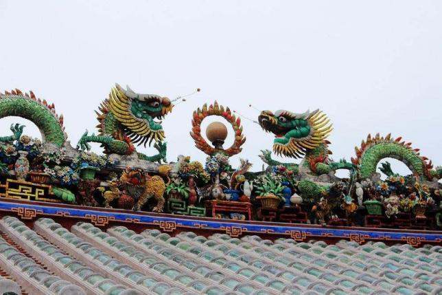 福建省东山县铜陵关帝庙位于铜山古城中岵嵝山下,依山临海,气派魏然,是一座闻名海内外的庙宇,且具有明古建筑艺术价值。庙的木结构部分为明代、部分为清代和近代建筑。庙宇属抬梁式木构架建筑,面阔三问,进深六间。悬山顶,绿瓦。多是石梭柱,柱础鼓庙前有一大广场,石雕栏杆,叠隔其间,莲花池介场中,绿水满波映衬古庙。