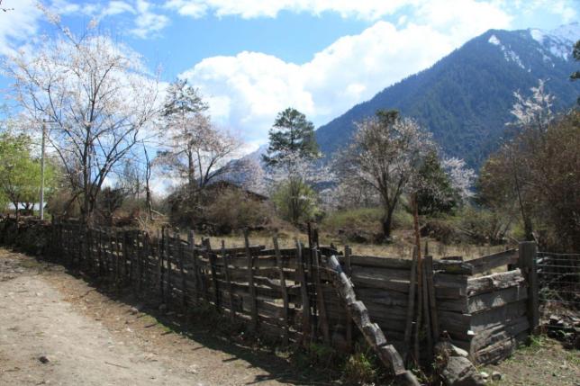 同时只要有人家的地方,房前屋后都会有桃花树。从桃花丛中望去,就能看见雪山。春色与冬景完美的结合,无处不是引人入胜的画面。