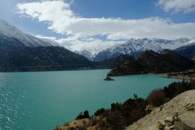 然乌湖和着碧蓝的湖水、白雪皑皑的雪峰,景色如诗如画。