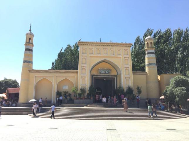 艾提尕尔清真寺坐落于新疆维吾尔自治区喀什市的艾提尕尔广场西侧,是一个有着浓郁民族风格和宗教色彩的伊斯兰教古建筑群,是新疆规模最大的清真寺,也是全国规模最大的清真寺之一。香妃墓坐落在喀什市东郊5千米的浩罕村,系自治区的重点文物保护单位。这是一座典型的伊斯兰古建筑群,也是伊斯兰教圣裔的陵墓。