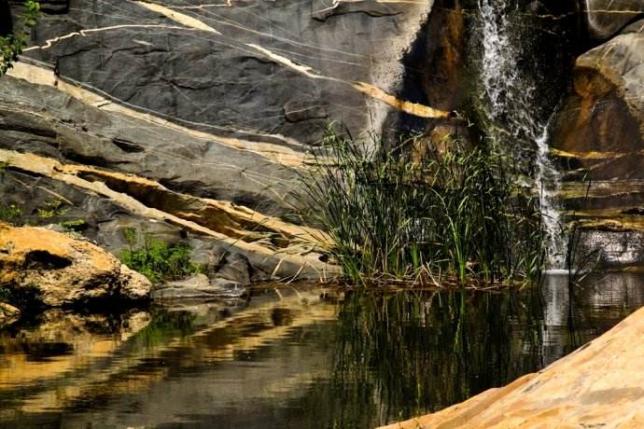 磨子坨景区有四条峡谷,沟沟有水,多处泉眼汇集成溪。植被茂密,溪水底部白沙清洁,水面清澈,一尘不染。