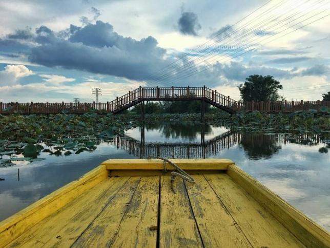 古劳水乡又称围墩水乡,至今已有600多年历史。这里渔家尽枕河,四面环水,依河成街,咫尺往来,皆须舟楫,鱼塘古榕交错,闲地少小桥多,于是有了岭南威尼斯之称。古劳堤内水网纵横交错,小艇穿行如梭,两岸蕉林摇曳,万亩鱼塘似明镜耀目,千顷桑地绿海翻波,那青青的田畴就像精雕的翡翠,好一派旖旎的南国水乡风光。