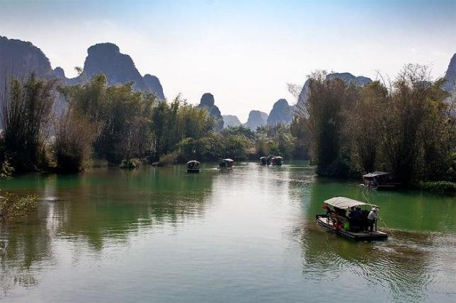 明仕田园,距大新县县城53公里,是国家一级景点。这里翠竹绕岸,农舍点缀,独木桥横,稻穗摇曳,农夫荷锄,牧童戏水,风光俊朗清逸,极富南国田园气息。游客可以乘坐竹排,顺流而下,饱览两岸迷人景色。这里,你会看到典型的喀斯特峰林地貌景观,看到凤尾萧萧,龙吟嘀嘀的碧江竹影,看到古风淳厚的壮族村落,看到威武的将军山,灵秀的通天洞,奇特的万乳崖,还有那天然生成的崖壁画。