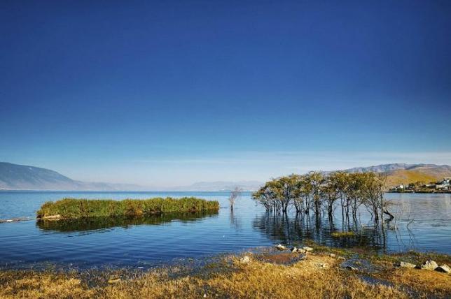 从空中往下看,洱海宛如一轮新月,静静地依卧在苍山和大理坝子之间。洱海共有3岛、4洲、5湖、9曲。洱海属断层陷落湖泊,湖水清澈见底,透明度很高,自古以来一直被称作“群山间的无瑕美玉”。
