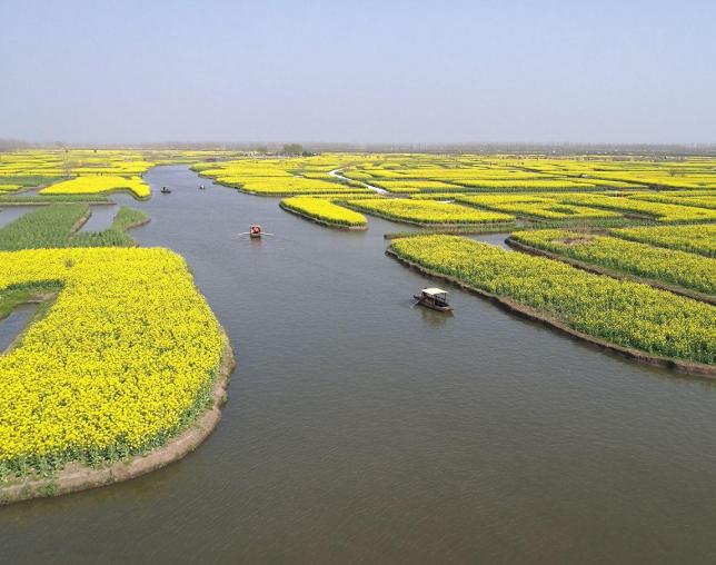 四月份兴化千岛油菜花开,那是一派“河有万湾多碧水,田无一垛不黄花”的奇丽景观。这里河港纵横,菱藕飘香,块块隔垛宛如漂浮于水面岛屿,有“万岛之国”的美称。岛上开满金灿灿的油菜花,在水面上形成一片金黄色“花海”,一望无际,令人叹为观止。