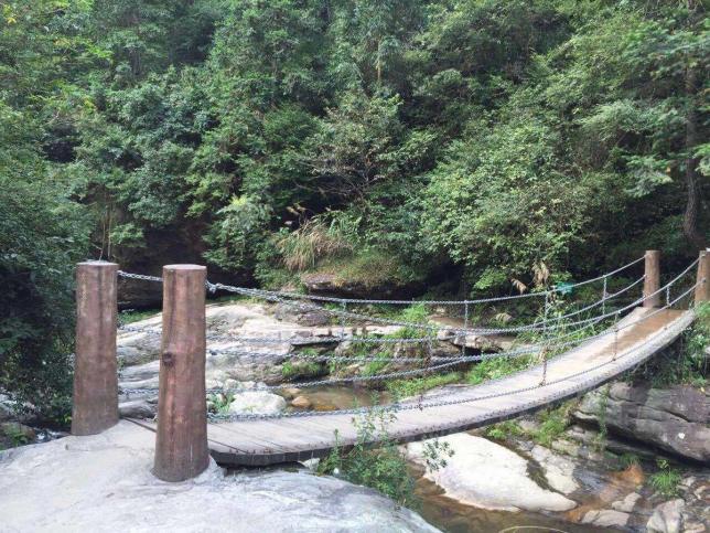 还可以带上小网子和小桶来这里抓鱼,回味童年的乐趣,山林间还有铁索桥,没有特别惊险刺激,不过也能小小的考验一下你的胆量。