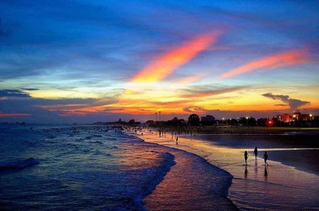 北海银滩均由高品位的石英砂堆积而成,在阳光的照射下,洁白、细腻的沙滩会泛出银光,故称银滩,北海银滩以其“滩长平、沙细白、水温净、浪柔软、无鲨鱼”等特点,而被称为“中国第一滩”。