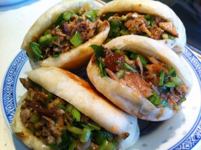 好的肉夹馍馍讲究的是铁圈虎背菊花心儿,吃上去一定要酥。所以有说法:宁肯肉等馍,不肯馍等肉。讲的就是馍一定是现打现吃。