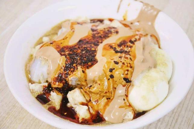 卤汁凉粉应该可以算作是回民街里的黑暗料理,它调料口味麻、辣、酸、呛、香,层次十分之丰富,通常只有在夏天才可以吃到呦。吃卤汁凉粉泡馍也讲究“蚕食”,一口芝麻酱香、一口卤汁的调料香、一口油泼辣子香,又突然一口混了蒜泥的芥末的呛香,凉粉的柔、馍的筋混合在这些复杂的味道里,吃时又不能乱搅。头一次吃的人会理解不了这种亦凉亦热,口味混塔的吃食。