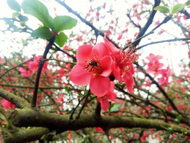 2月2日,为期一个月的双流区第十六届海棠花节已经开幕了。现在春光正好,棠湖公园里各处的贴梗海棠也正在扬起娇柔的脸庞,在各个枝头怒放。以前没有色彩的棠湖公园你爱答不理,现在海棠花开成海的棠湖公园你已经挤不进去了!在这个火红海棠花开满公园的时候,远远望去像是一位穿着大红色嫁衣的娇艳新娘,她火红的衣摆就盖在你头上,散发出一股一股的幽香,果真教人流连忘返,沉醉花丛之中。