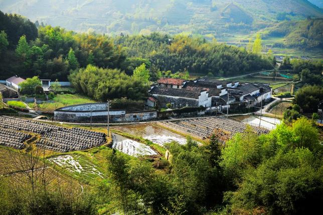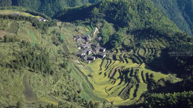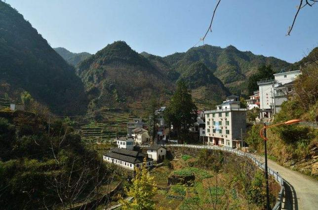 山间的红叶点缀着白墙黑瓦,犹如一幅山水画般的田园诗歌图。