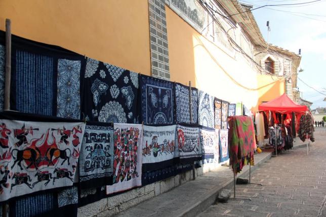喜洲除了可以看到原汁原味的白族民居外,还可以到周城欣赏大理独有的国家非物质文化遗产之一的“扎染”。周城是大理传统扎染保留最完整的村子,扎染的染料为板蓝根,天然又环保,真正的保留了纯朴的手工制作工艺,整个制作过程要经过绘图、扎花、脱浆、染色、漂洗、晾晒、拆线这七步。如果你来到大理,最不能错过的就是一定要做一张古法扎染。