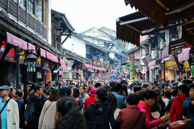 避人潮方案:从金碧街进入,沿着极具山城特色的吊脚楼青石板路走过,到宝善宫喝茶躲避嘈杂的人流。
