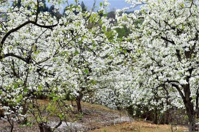 推荐理由:满山的梨花,来阵风,雪白的梨花随风飘落,拍照别有一番意境,原生态与自然地貌保护的很好,附近有农家乐,在梨树下面品茗,非常的惬意让人如痴如醉,温馨的感觉。
