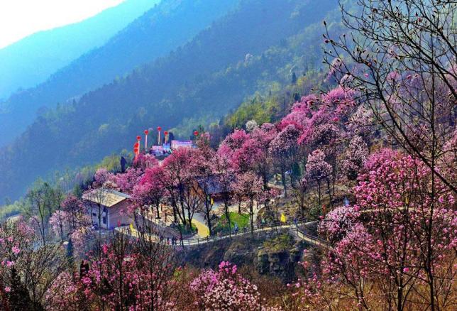 推荐理由:药王谷有我国最大的成片百年辛夷林,树龄最大的有四、五百年,因辛夷花能治鼻疾而被历代山民称为神树。每年清明前后,数千株高大的辛夷花树竞相怒放,漫山花开,颜色由白到粉、由粉到紫,由紫到红,如诗如画,依山成势,形成壮观的高山花海奇观,其壮观景色令人难忘。