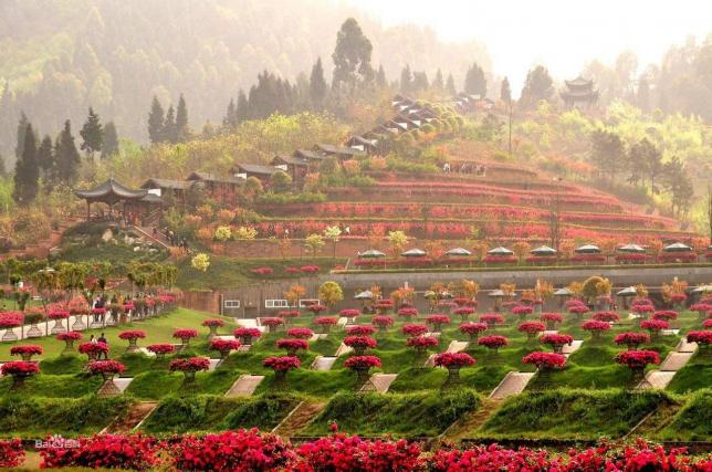 推荐理由:杜鹃长廊也称“天府第一杜鹃长廊”,400多米依山而建的长廊两旁种植了56个品种的杜鹃。拾级而上,既可得登山之乐,又可得赏花之趣。