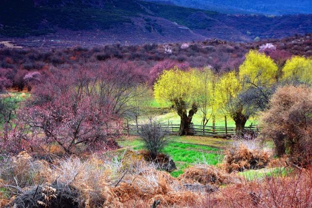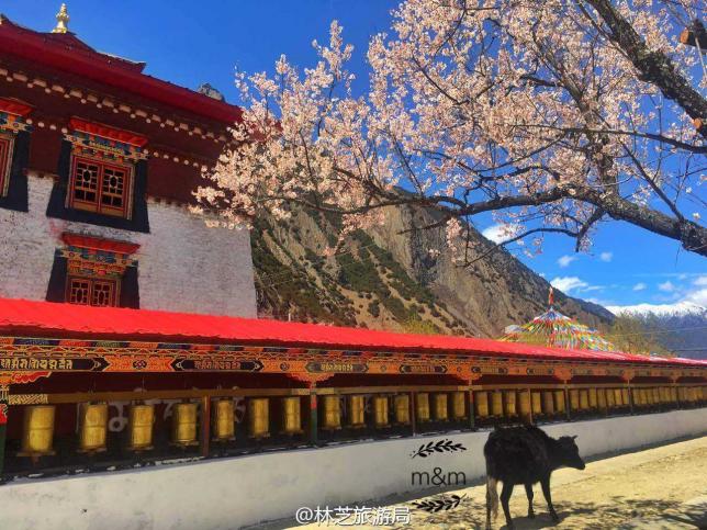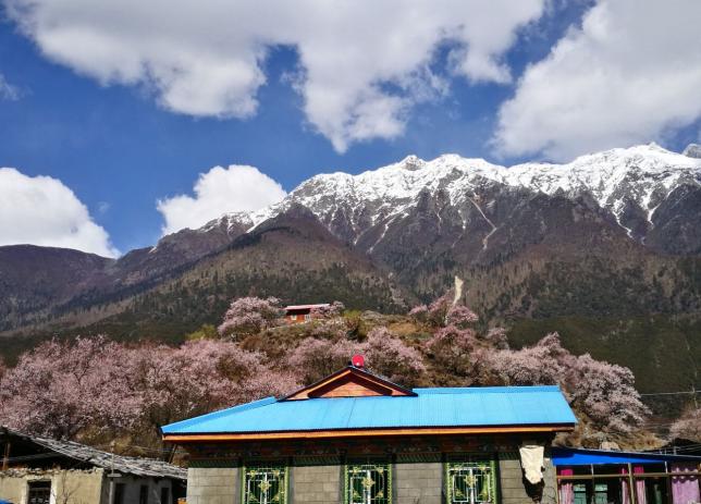 这里是整个工布达江县境内桃花最多但不被太多人熟知的村落,距离巴河镇30公里,最佳欣赏时间为4月中旬,强力推荐。拉如村的野桃树布满了整个村庄,百年以上的老桃树枝干挺拔,遒劲有力,随意地伸展开,映衬着村庄,绿油油的青稞地,雪山,似人间仙境。