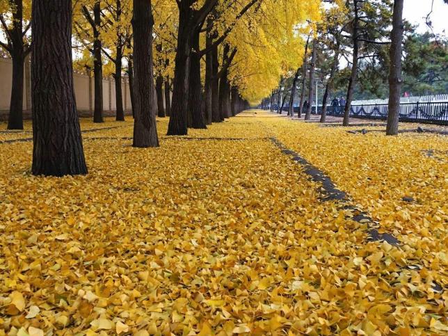 大抵银川最美的秋,莫过于凤凰公园里的林荫大道了。走在铺满落叶的金色大道上,脚踩着酥脆的银杏叶,放眼望去,路似乎没有尽头,而美也没有尽头。