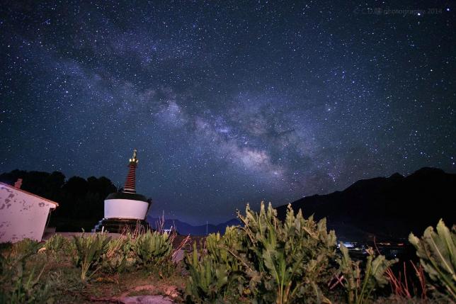 郎木寺夜晚的星空很美,尤其是夏季与初秋季节的夜空更是繁星点点,银河无际。选一个晴朗的夜晚,蹲守在郎木寺山顶的佛阁拍摄星空星轨是摄影发烧友必做之事。
