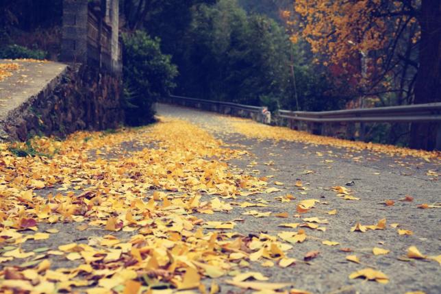 一路风吹,一路落叶,那时不时飘落的叶子划过脸颊,铺成一条金黄大道,也许你回头一看,就是忘不掉的风情。