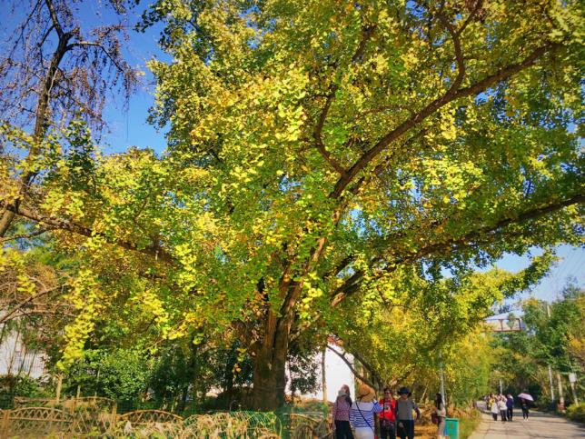 这里有银杏树100多万棵,其中光是百年以上的野生银杏树就有18000多棵。所以一到深秋,宁静的村落便会荡漾起诗一般的涟漪,微风吹过,带着片片落叶纷飞,你若在此,肯定也会失神呆立。
