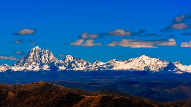 稻城亚丁位于四川甘孜藏族自治州南部,地处著名的青藏高原东部,横断山脉中段,被誉为“最后的香格里拉”、 “蓝色星球上最后一片净土”。亚丁藏语意为“向阳之地”,又名念青贡嘎日松贡布,即“圣地”之意。