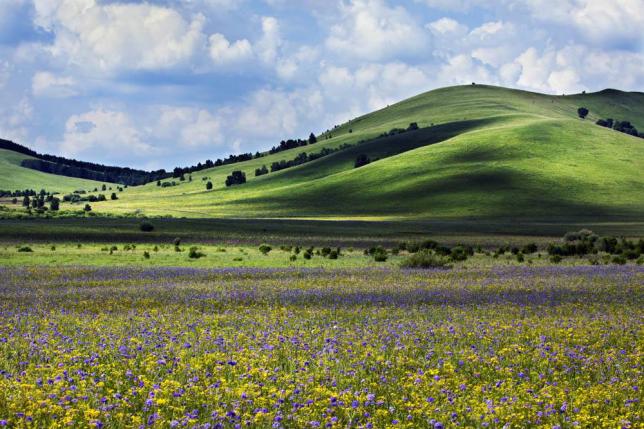 毛垭大草原位于四川省甘孜州理塘县县城以西,群山的环抱之中,如海的草原郁郁葱葱,这就是毛垭大草原。夏日,湛蓝的晴空下,牛羊成群,绿草连天,盛开的野花姹紫嫣红,打一个滚就是一身花香;秋天,晴空高远,云朵洁白,草木金黄;冬日则是白雪皑皑,原驰蜡像。季节的变化赋予大草原无边的神韵与风姿。