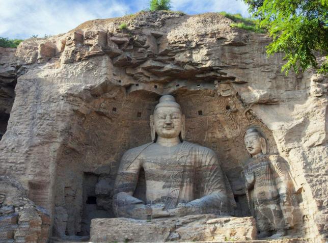 云冈石窟古称武州山(武周山)石窟,是由北魏皇室主持开凿的皇家寺院,位于大同市西郊16公里的武州山南麓,五个石窟的中央都雕刻了巨大的如来佛像,象征了北魏五朝的五代皇帝。